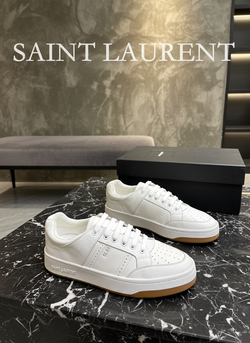 Saint Laurent White Leather Sneakers Casual Shoes