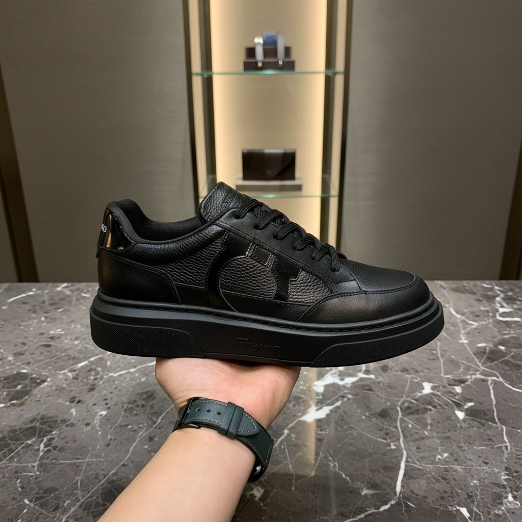 Salvatore Ferragamo Men’s Black Leather Sneaker Shoes