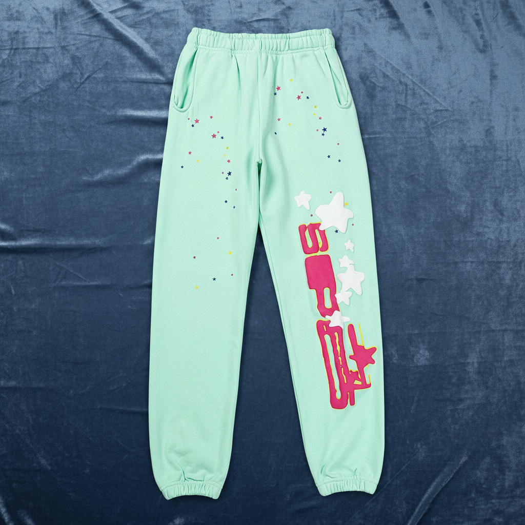 Sp5de Mint Green Hoodie & Pants Set with Spider Web Print