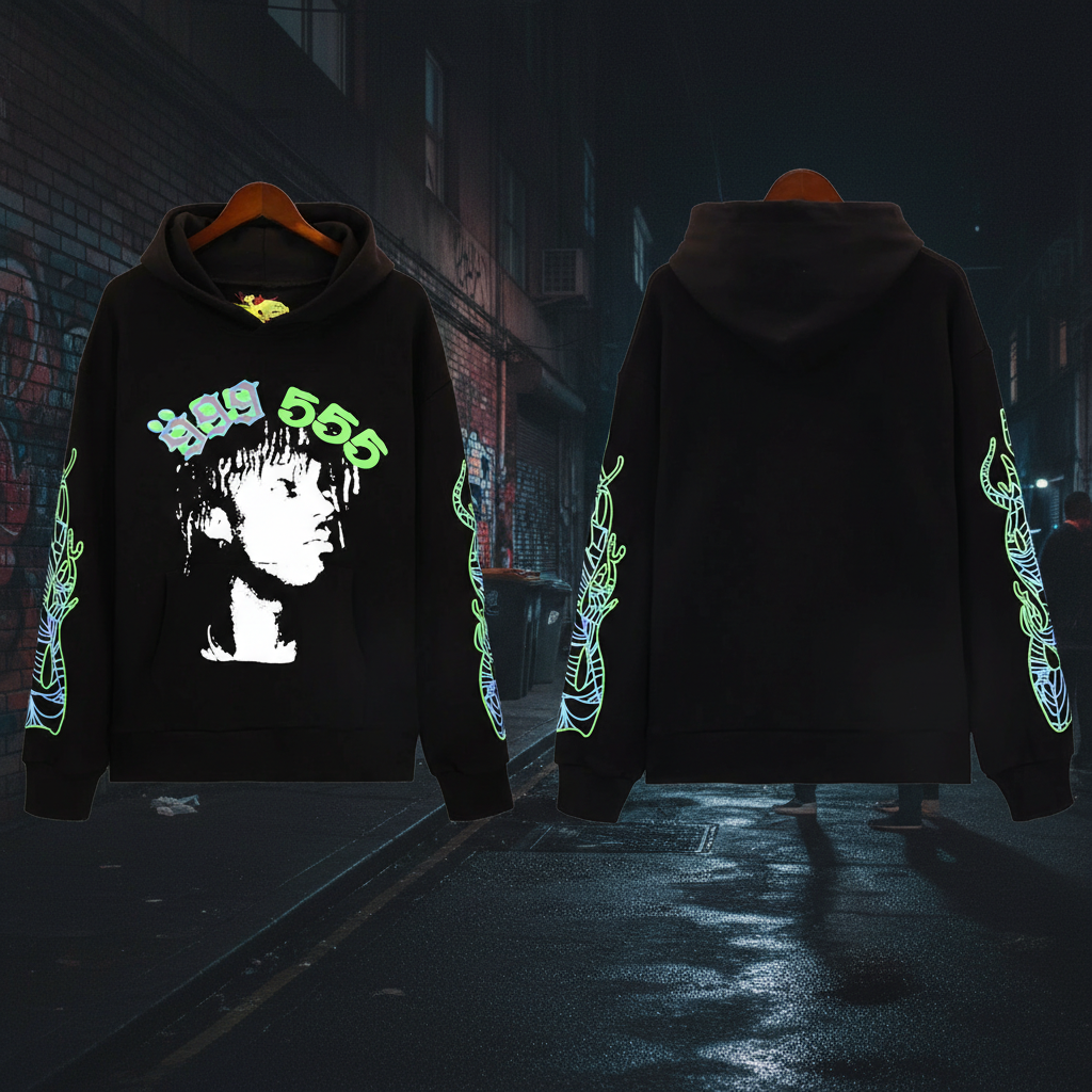 Sp5der 555 Black Graphic Hoodie Streetwear Pullover