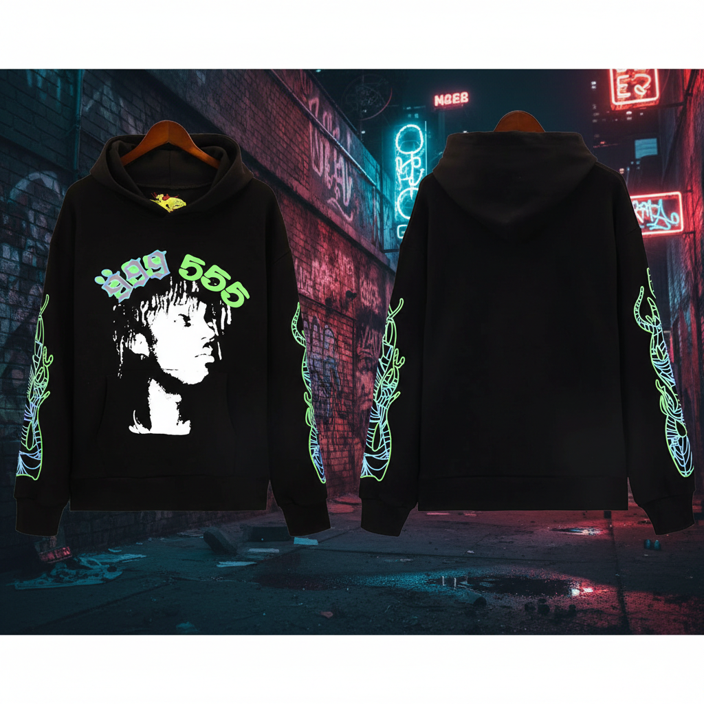 Sp5der 555 Graphic Black Hoodie Streetwear Pullover