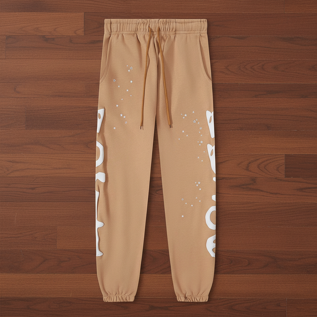 Sp5der Beige Star 3D Foam Print Hoodie & Pants Set
