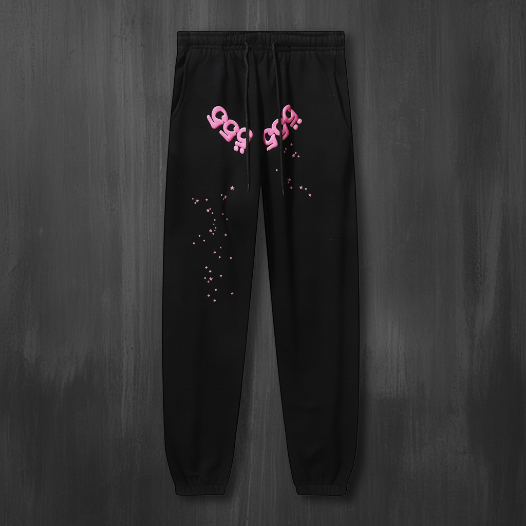 Sp5der Black 3D Web 555 Hoodie & Pants Set Unisex