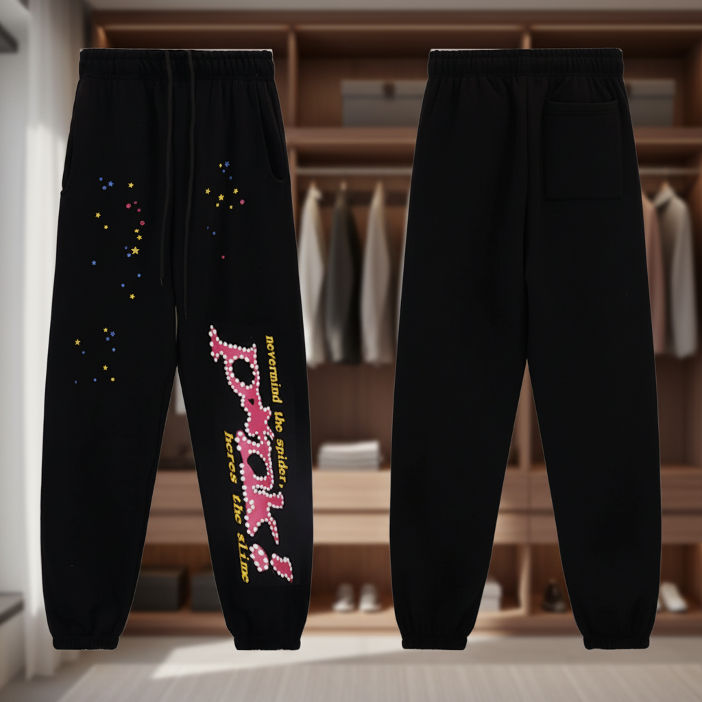 Sp5der Black Graphic Cargo Joggers – Cotton Blend & Elastic Waist