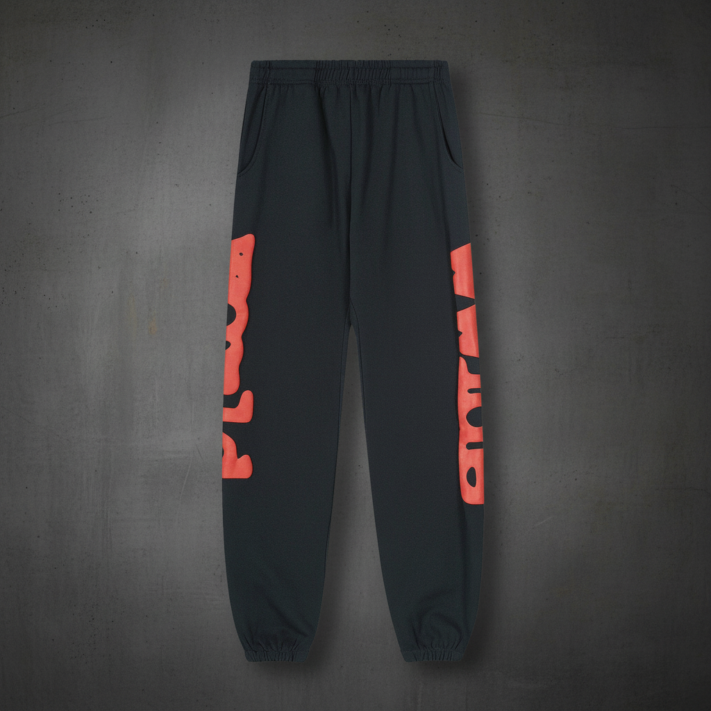 Sp5der Black Hoodie & Joggers Set, Red Cobweb Print