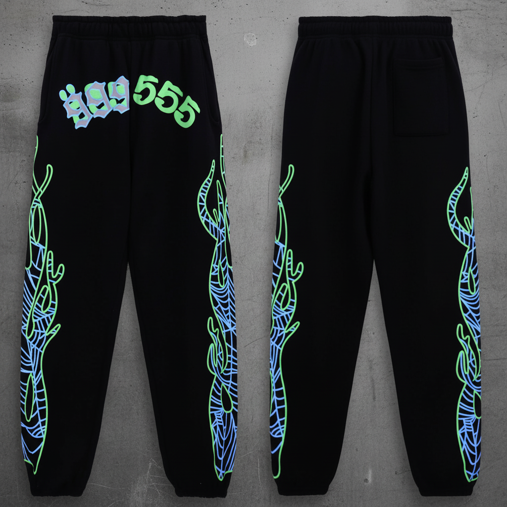 / Sp5der Black Hoodie & Joggers Set – Unisex Streetwear