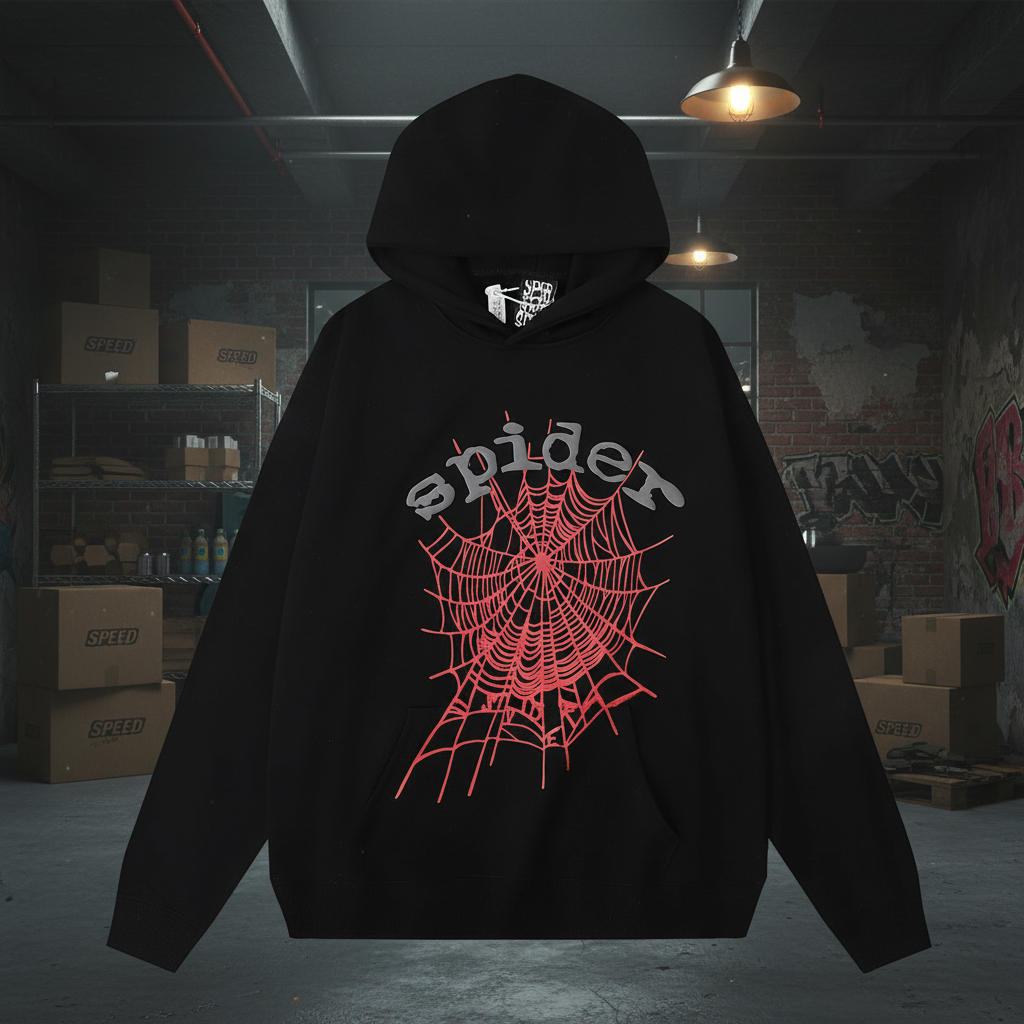 Sp5der Black Hoodie & Joggers Set – Unisex Streetwear