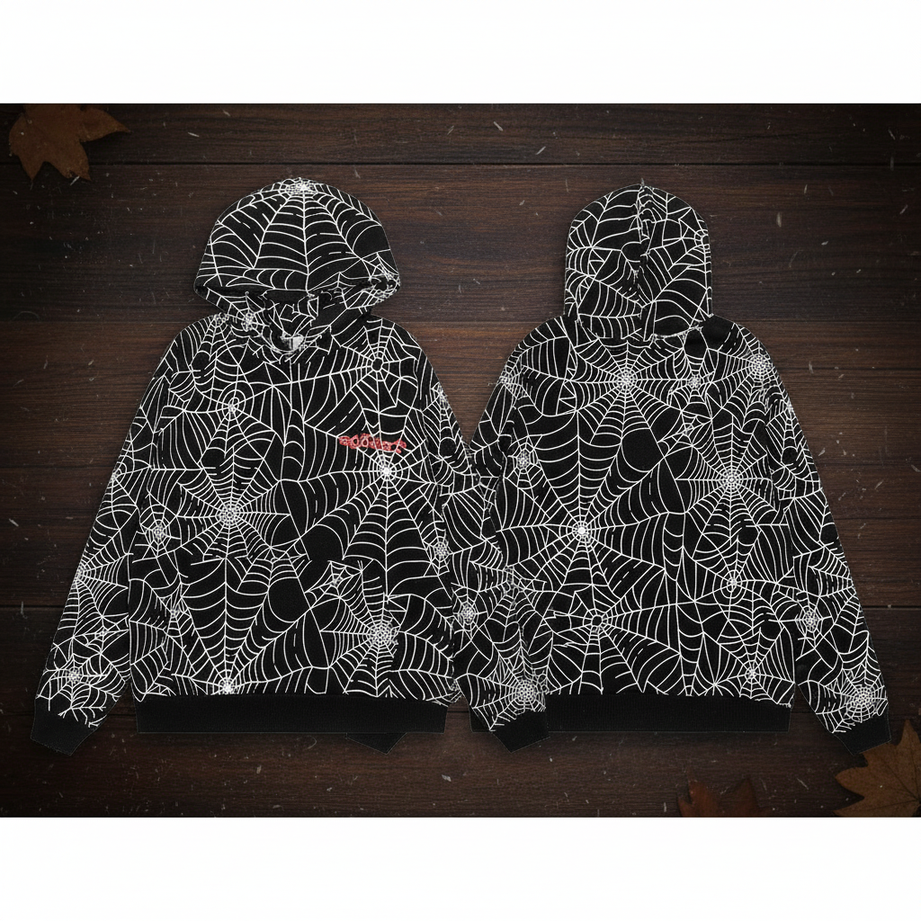 Sp5der Black & White Web Print Hoodie & Pants Set