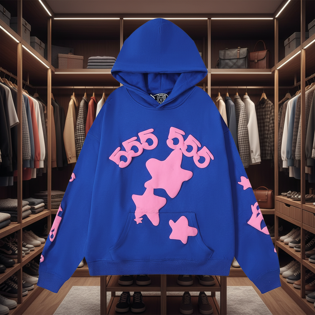 / Sp5der Blue Star 3D Foam Print Hoodie & Pants Set