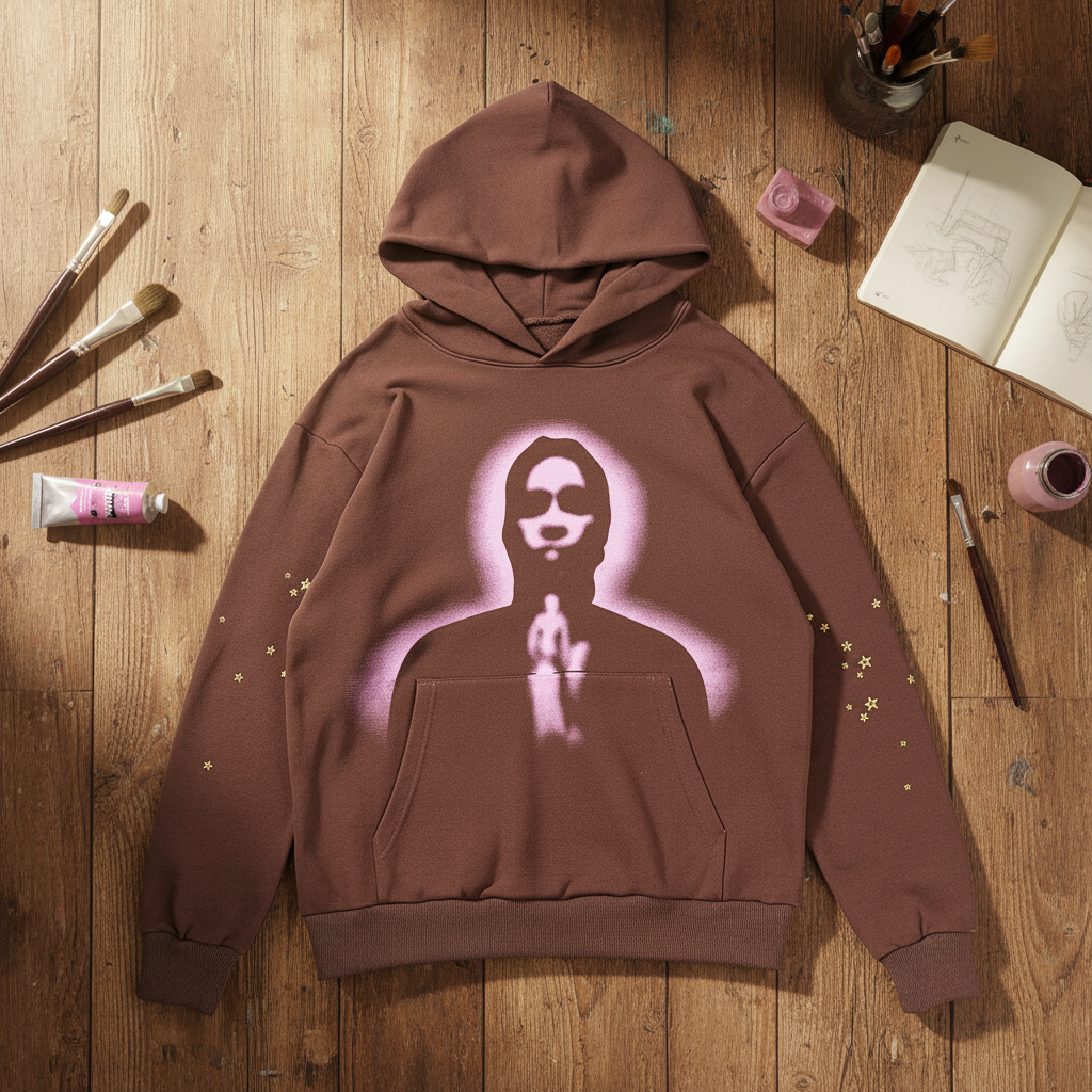 Sp5der Brown Hoodie: Unisex Cotton-Blend Streetwear with Star Design