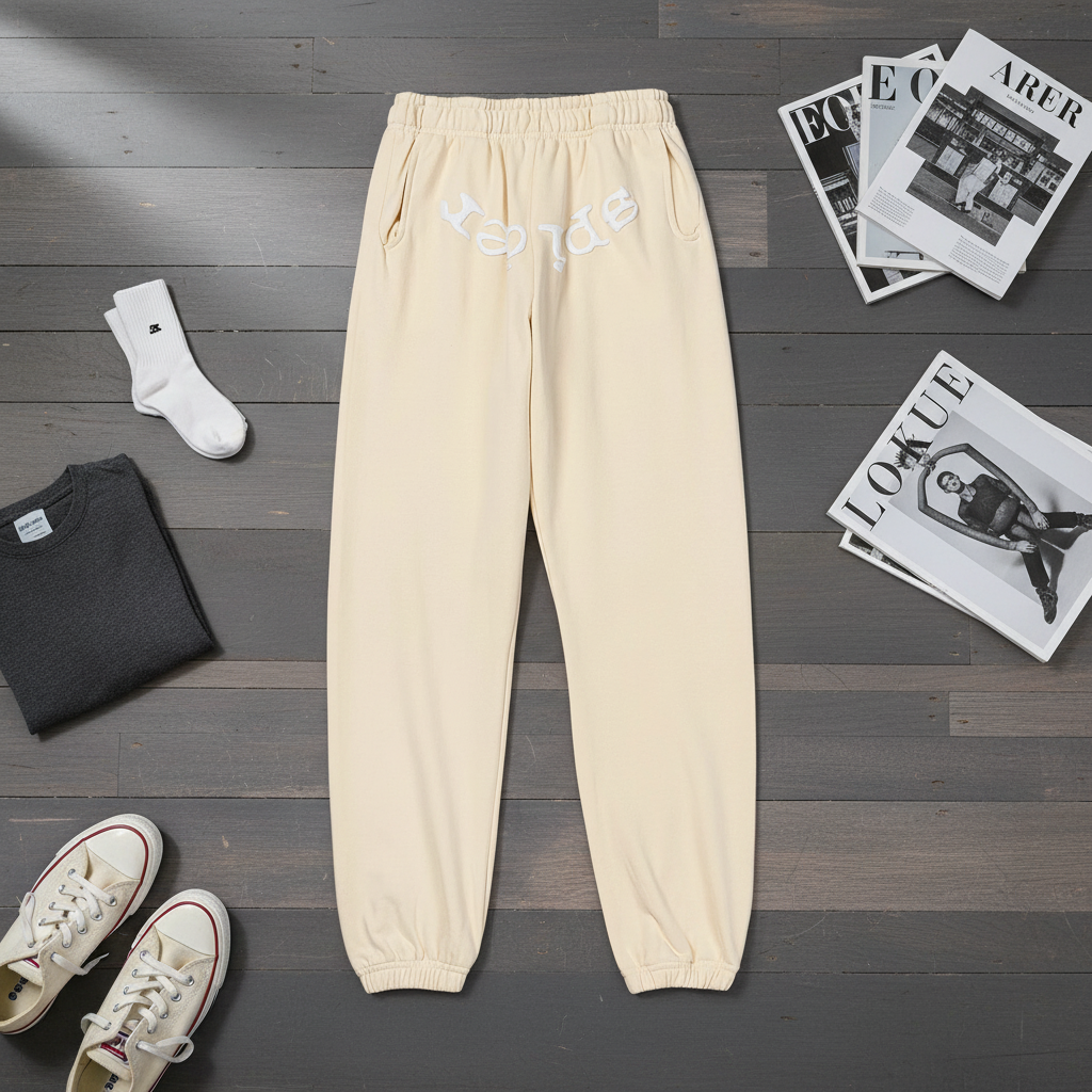 Sp5der Cream 3D Foam Tracksuit Pants, Unisex Cotton Joggers