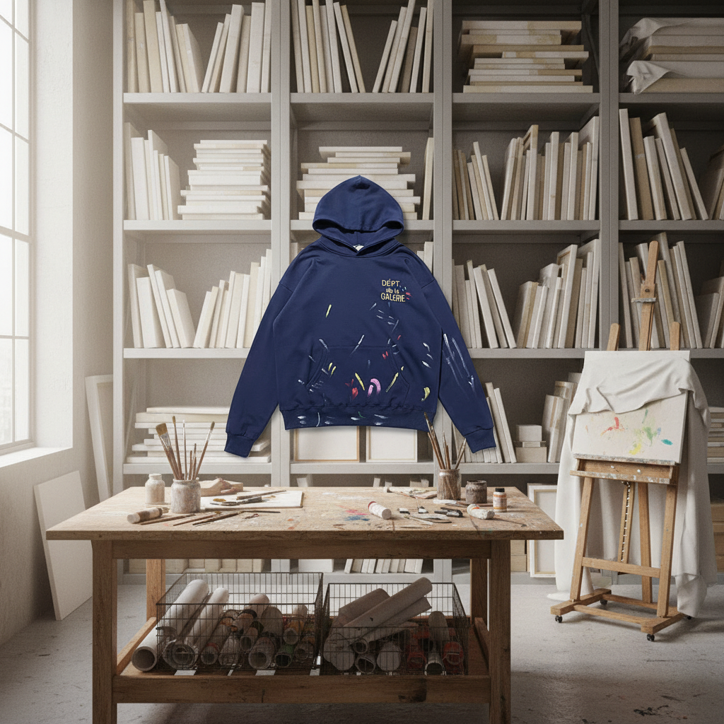 Sp5der GALLERY DEPT. Navy Splatter Hoodie | Unisex Relaxed Fit