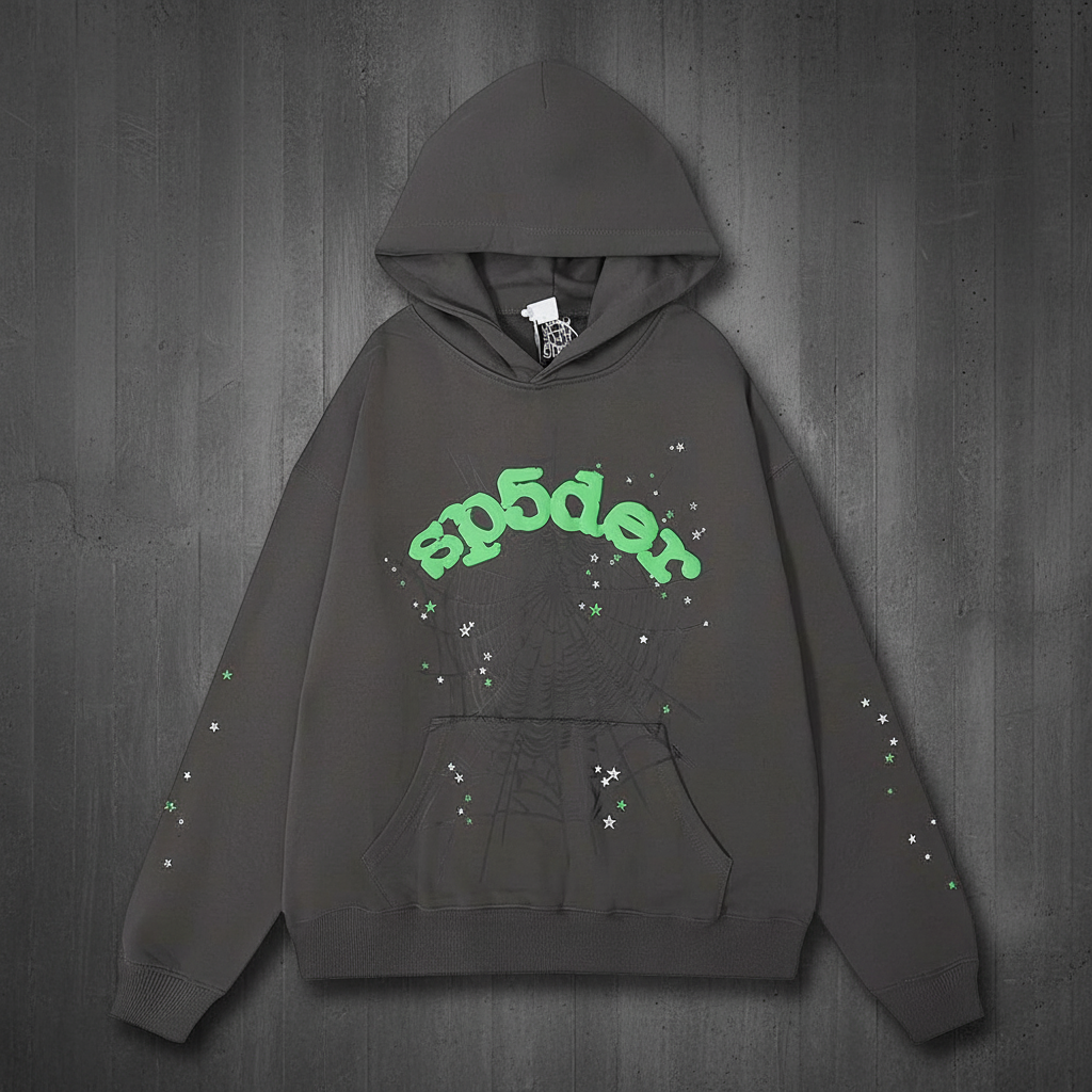 / Sp5der Grey Hoodie & Pants Set, Unisex Streetwear