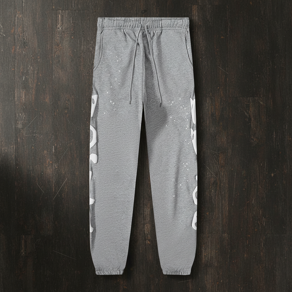 Sp5der Grey Star Hoodie Set, 3D Foam Print, Unisex Streetwear