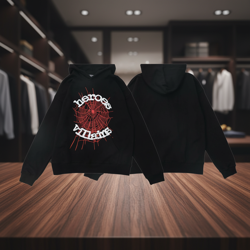 / Sp5der Hoodie: Unisex Black Cotton Streetwear with Web Print