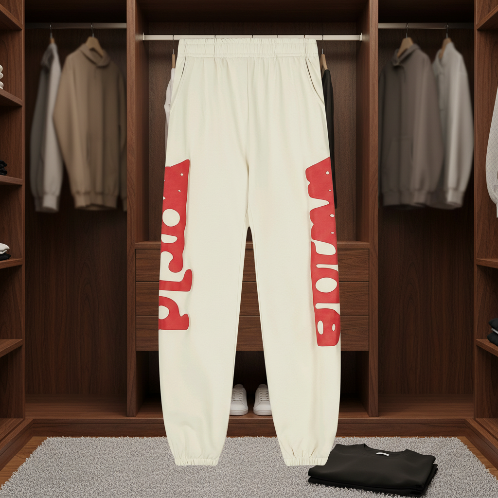 Sp5der White 555 Foam Letter High Street Pants, Unisex