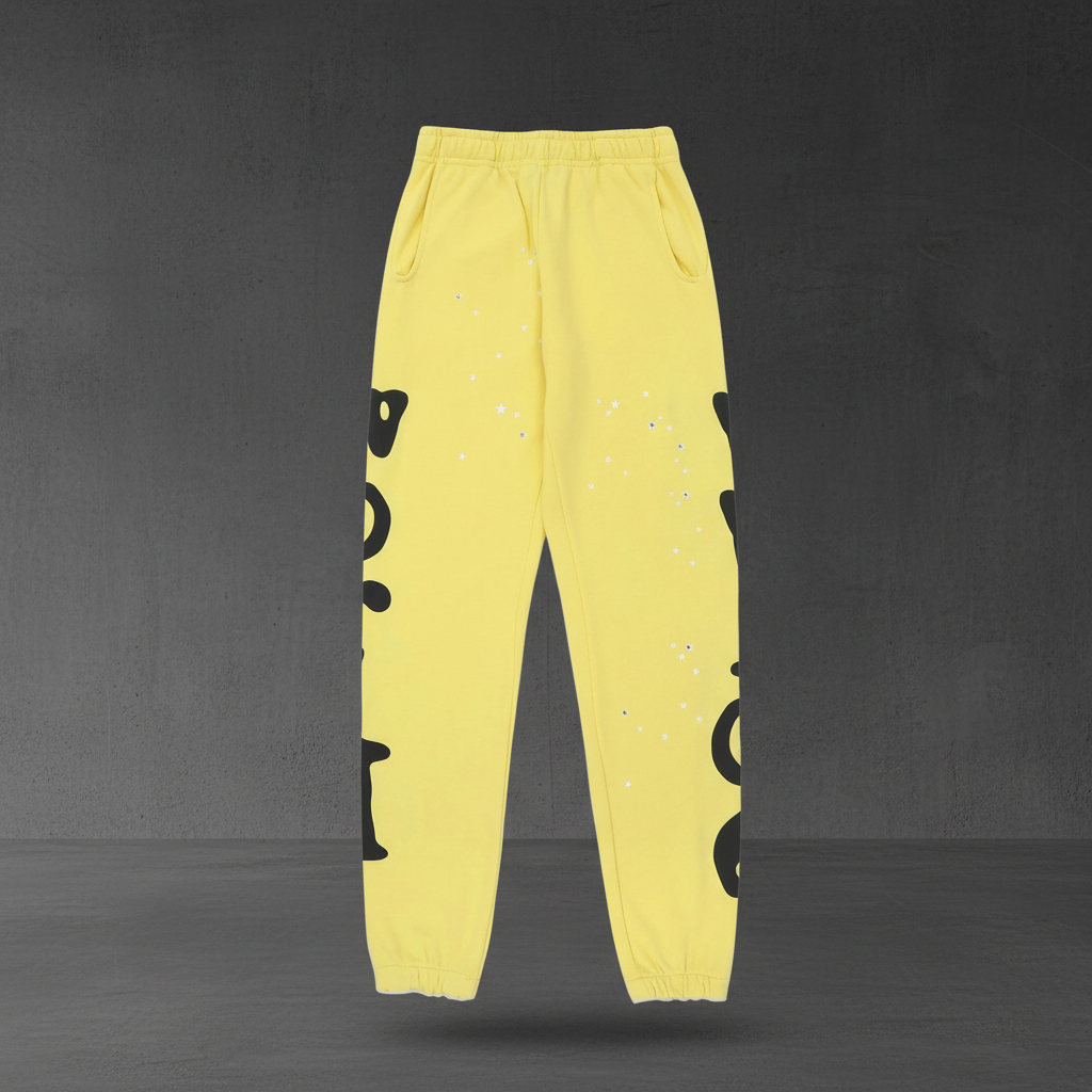 Sp5der Yellow Tracksuit: Spider Web 3D Foam & Glitter Stars