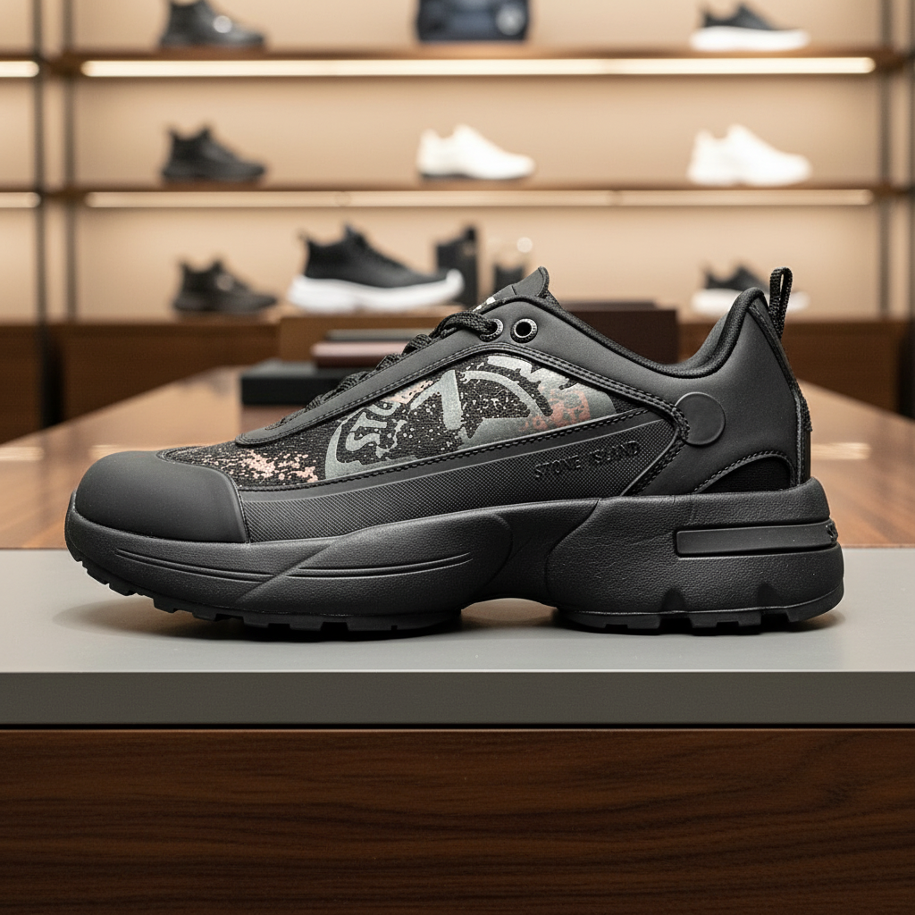Stone Island Grime Sneakers – Black Mesh Breathable Outdoor Shoes