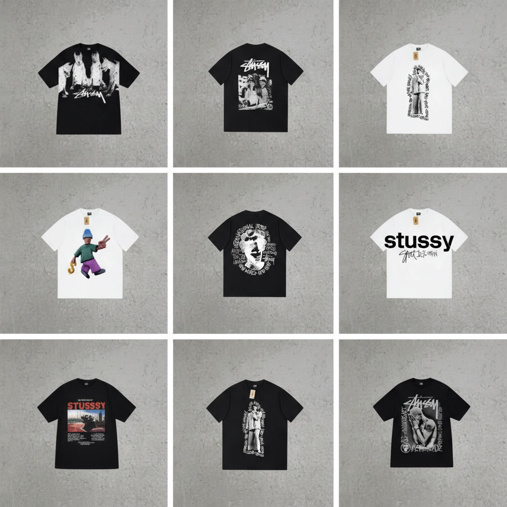 Stussy graphic print T-shirt, trendy streetwear style, premium cotton, comfortable fit, perfect for skate, surf, and casual fashion lovers worldwide.