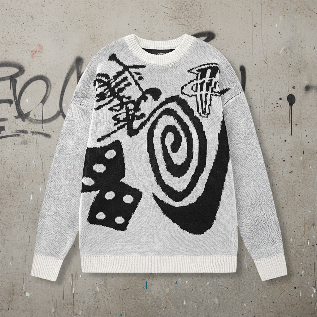 Stussy Graphic Spiral Dice Knit Sweater Grey