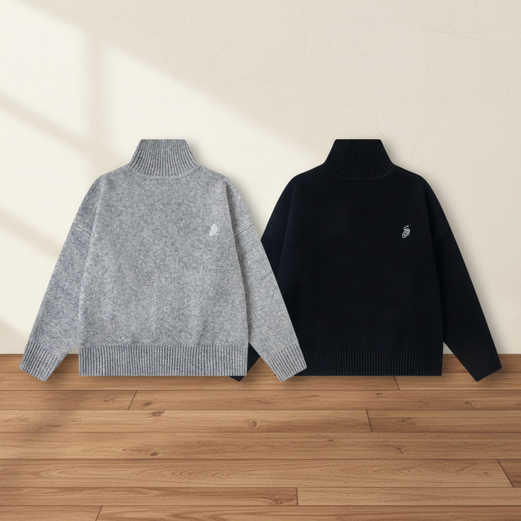 Stussy Hoodies, cozy high-neck knit design, available in grey and black, perfect for casual wear and street style fashion.