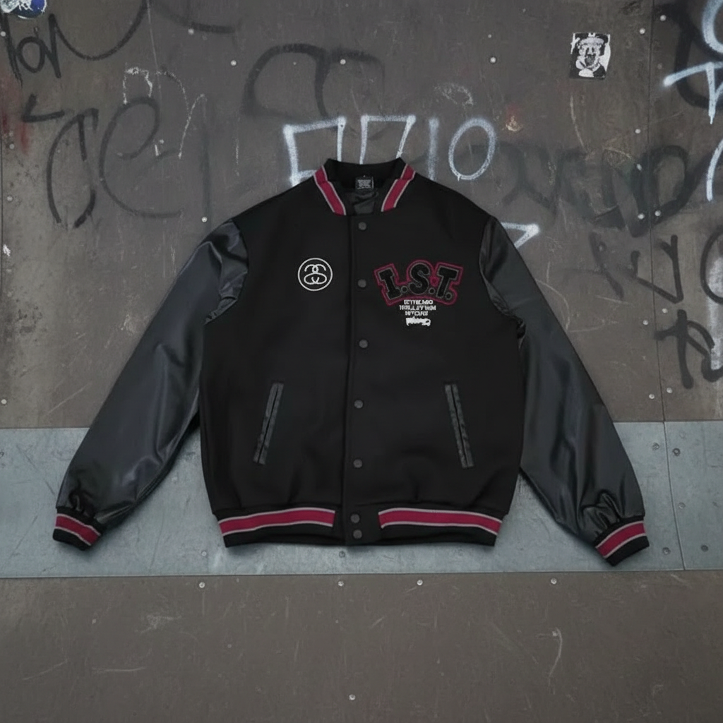 Stussy LST Black Leather Varsity Jacket