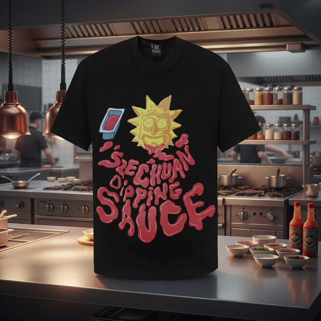 / Tee Jays Black Cotton Tee: Rick Graphic & Szechuan Sauce Streetwear