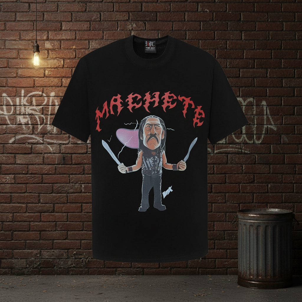/ Tee Jays MACHETE Black Vintage Abstract Print T-Shirt