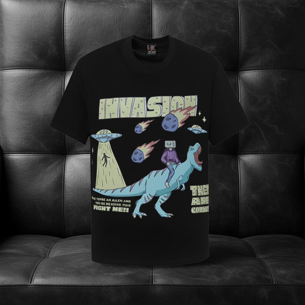 / Tee Jays Vintage Alien Invasion T-Shirt: Retro UFO Cotton Tee
