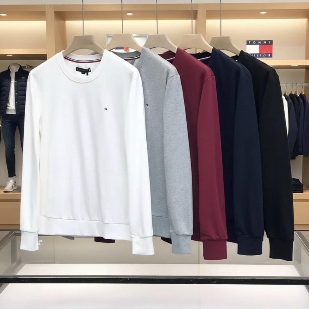 Tommy Hilfiger men’s classic crewneck sweatshirts, soft cotton, solid colors, perfect for casual wear, fall and winter layering, stylish and comfortable everyday fashion.