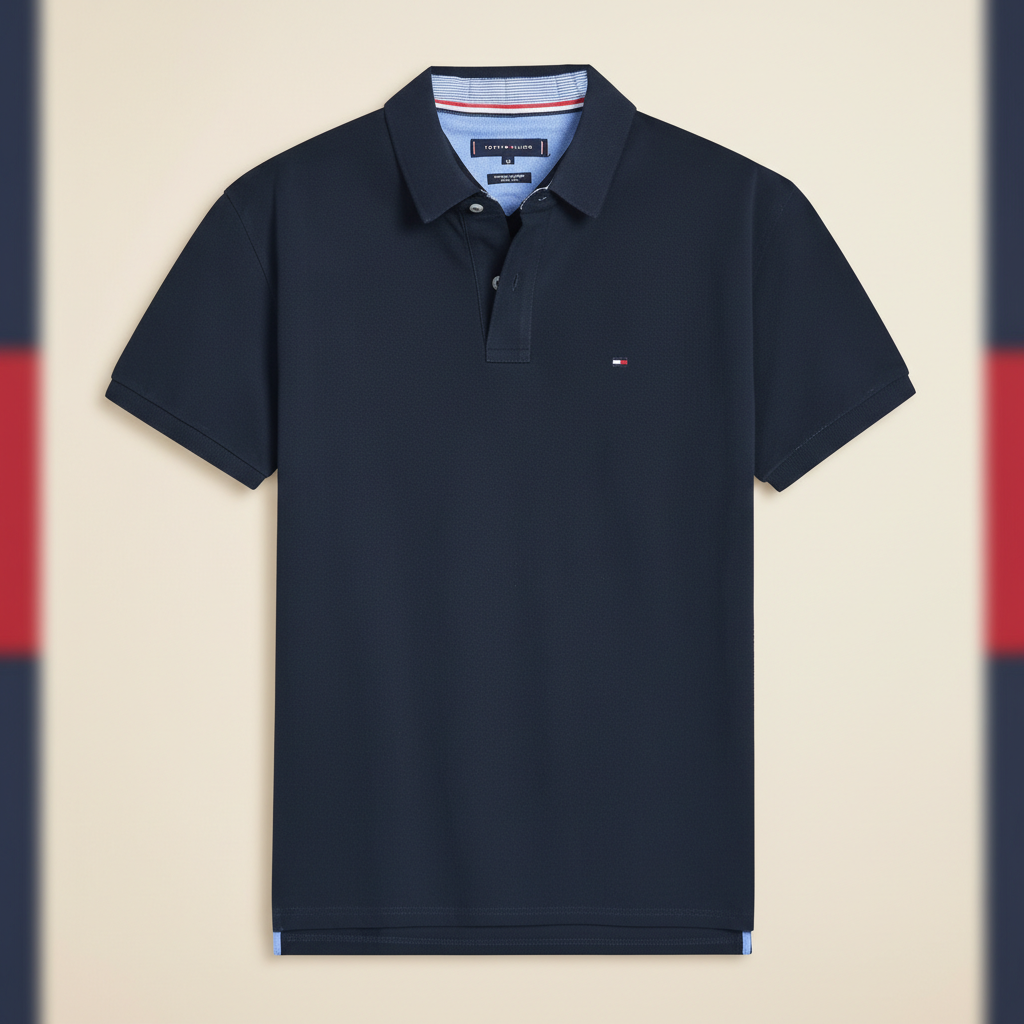 Tommy Hilfiger Men’s Classic Navy Short Sleeve Polo Shirt, Premium Cotton, Casual and Smart Wear for Everyday Comfort and Style.
