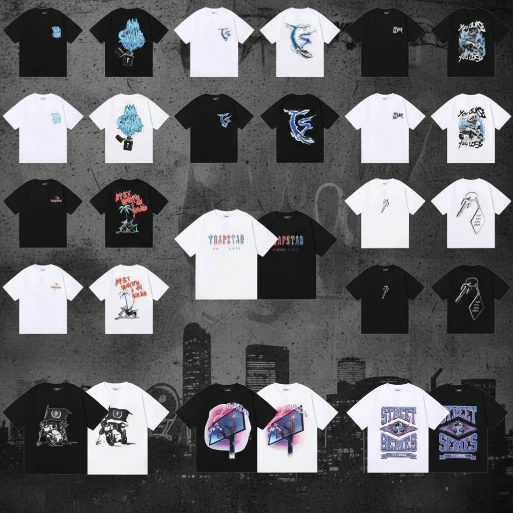 Trapstar graphic print T-shirts, trendy streetwear tops in black and white, featuring bold designs for casual style and urban fashion lovers. Perfect for everyday wear.