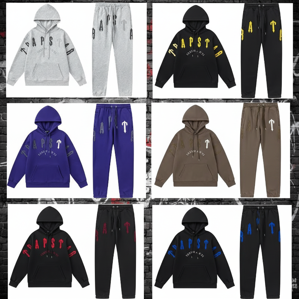 Trapstar Hoodie and Sweatpants Set, stylish streetwear tracksuit, premium cotton, casual fit, perfect for urban fashion, available in multiple colors for men and women.