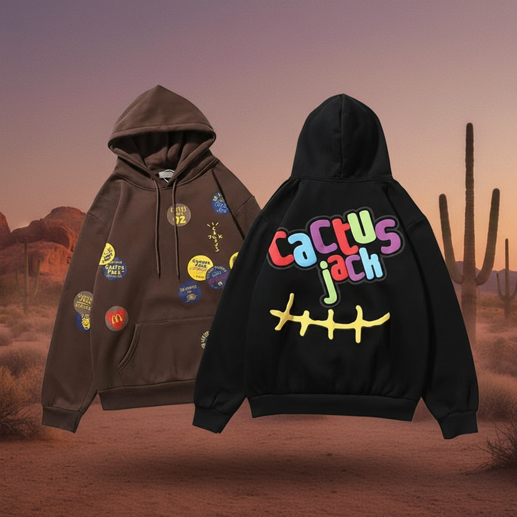 Travis Scott Cactus Jack hoodies, stylish streetwear with vibrant graphic prints, soft cotton, and a relaxed fit, perfect for casual wear and hip hop fashion lovers.