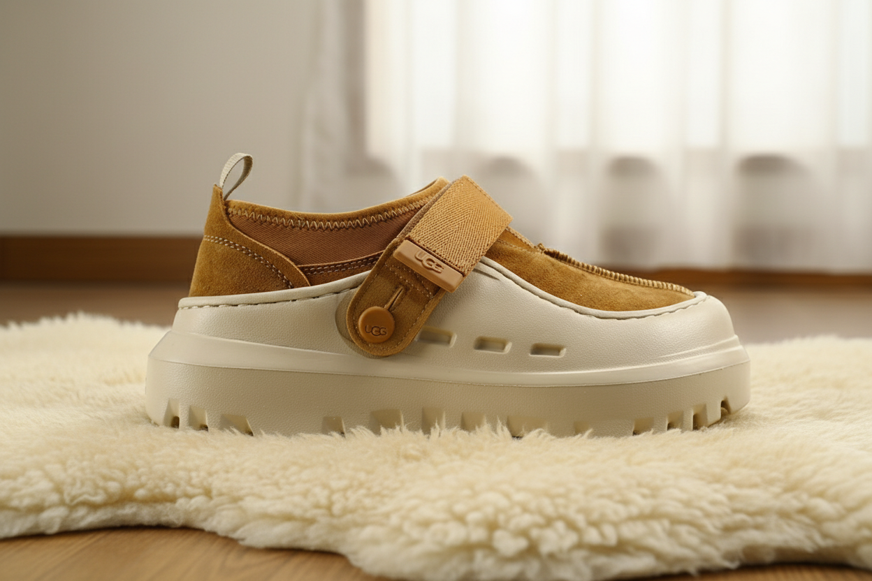 UGG Women’s Casual Platform Sandals, Brown Suede with Adjustable Strap, Lightweight Durable Sole, Sizes 36-45