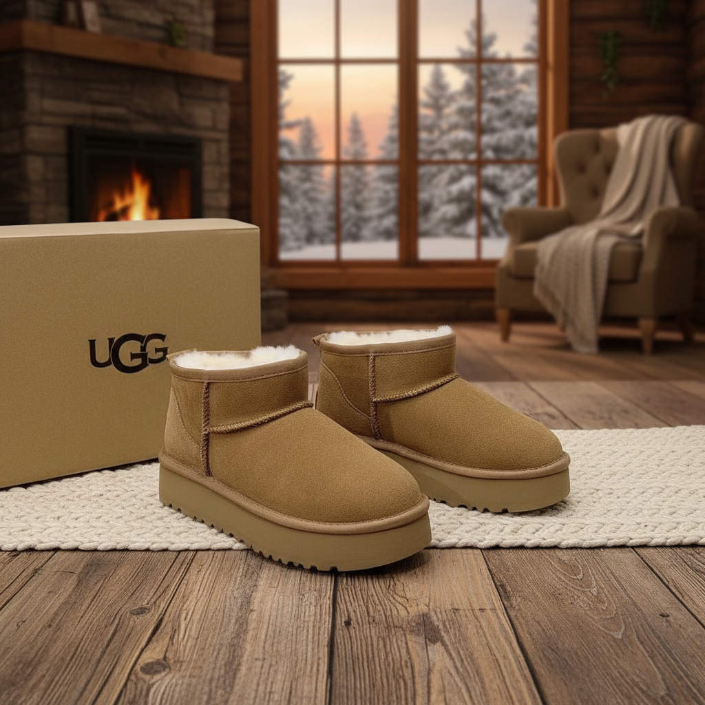 UGG Classic Short Boots, genuine suede with plush sheepskin lining, cozy winter footwear offering warmth, comfort, and durable non-slip sole for everyday wear.