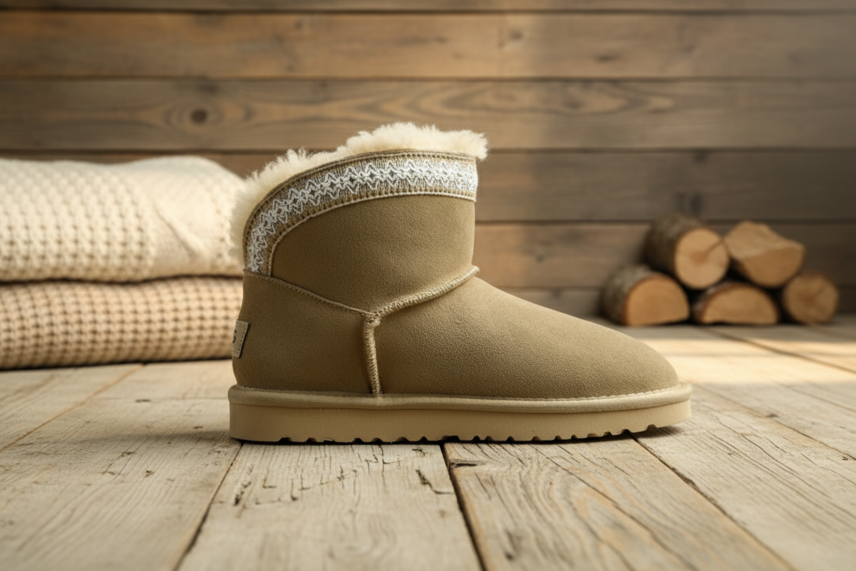 UGG Women’s Short Winter Boots, Classic Suede Upper with Cozy Fur Lining, Non-Slip Sole, Stylish Embroidered Trim, Warm and Comfortable for Cold Weather