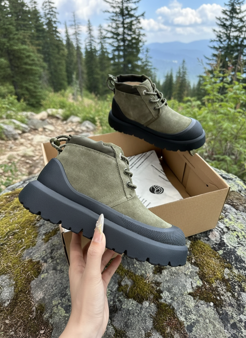 UGG Men’s Green Suede Ankle Boots with Chunky Non-Slip Sole, Stylish Outdoor Casual Footwear for Comfort and Durability