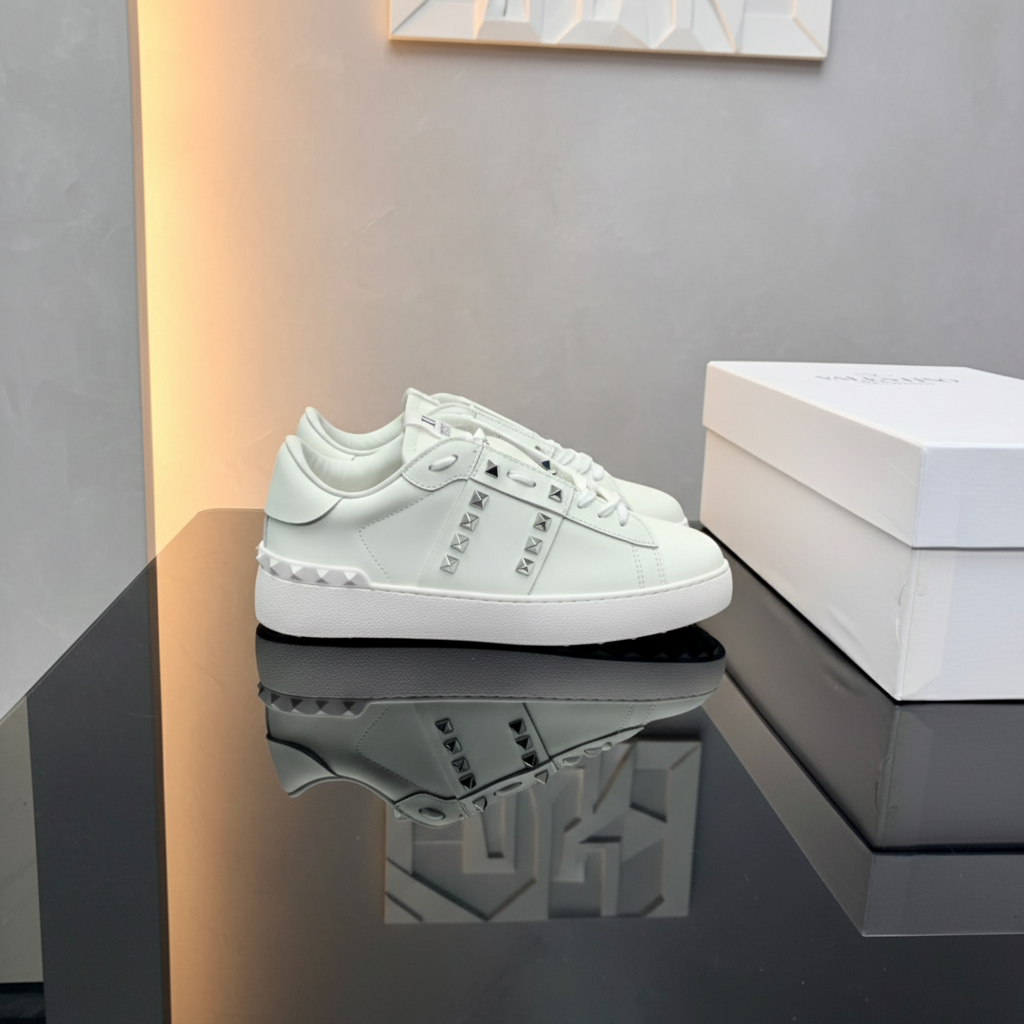 Valentino White Leather Studded Sneakers