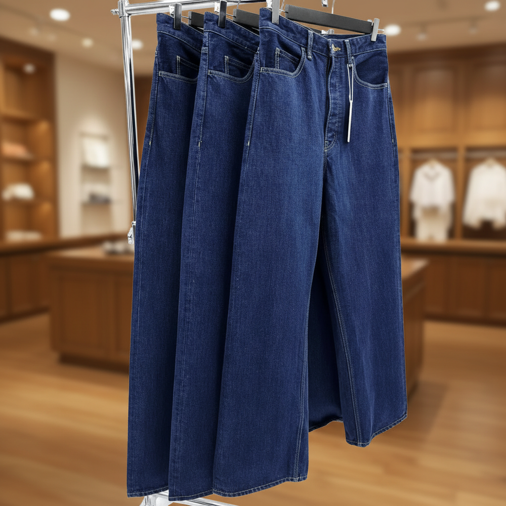 PantsVujade Wide Leg High Waist Blue Denim Jeans for Women, Vintage Style Casual Loose Fit Trousers, Soft Fabric Streetwear Fashion